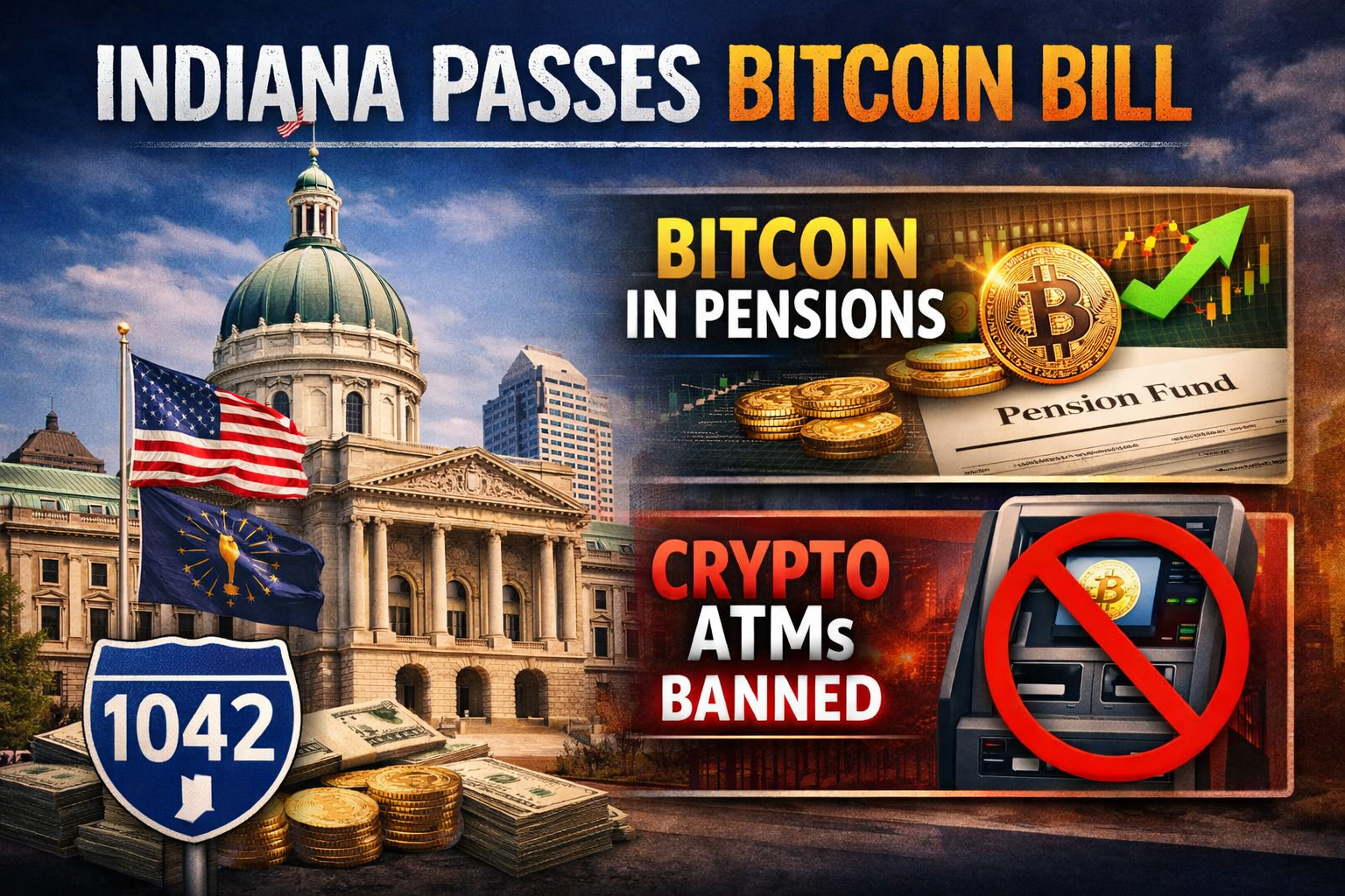 Indiana has passed one of the most significant pieces of crypto legislation in the United States in 2026. House Bill 1042, now sitting on Governor Mike Braun’s desk awaiting his signature, would open Indiana’s public retirement funds to Bitcoin and spot crypto ETFs — while simultaneously banning crypto ATMs statewide. It is a fascinating piece of legislation that says something important about where America is heading with Bitcoin.