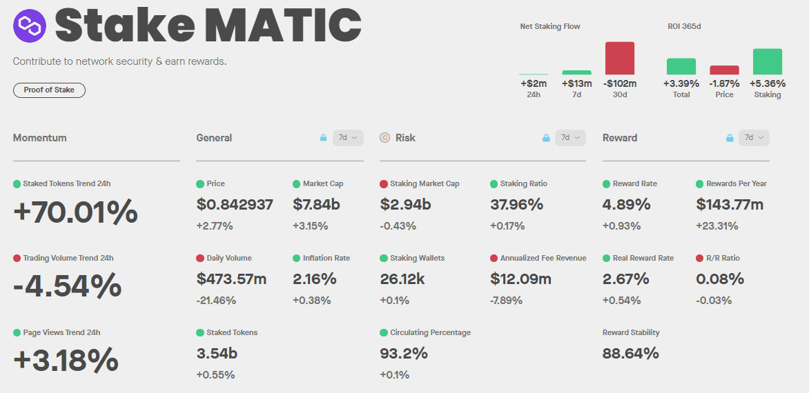 An analysis of MATIC’s staking ecosystem revealed a positive performance. Following a notable decline, the total number of staked MATIC gained momentum, reaching 26.1k wallets with a staking ratio of 37.9%. As of the latest update, MATIC’s staking market capitalization surpassed $2.94 billion.